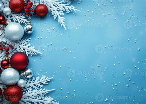 Blue And Red Christmas Background Blue and Red Christmas Ornaments on Bright Holiday Background with Copy